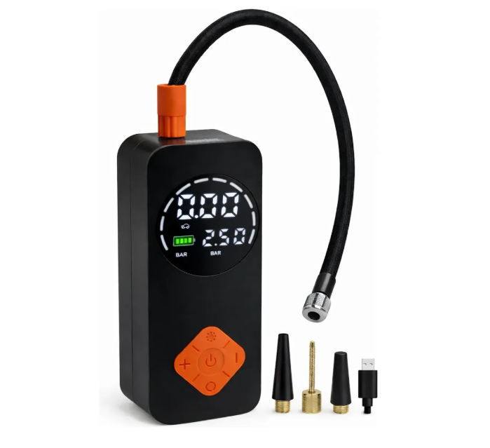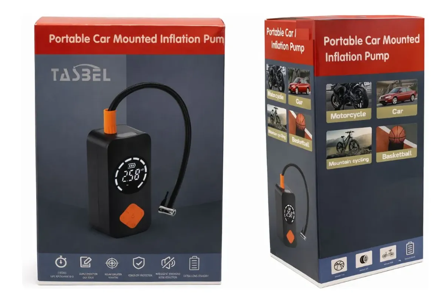 l Compresor de Aire Portátil TASBEL es la herramienta definitiva para el conductor moderno y el deportista activo. Olvida las estaciones de servicio y los cables enredados; este inflador digital combina potencia y portabilidad en un diseño compacto que cabe en la palma de tu mano. Es la solución preventiva perfecta para mantener la presión óptima en tus neumáticos, garantizando seguridad y eficiencia en cada trayecto.